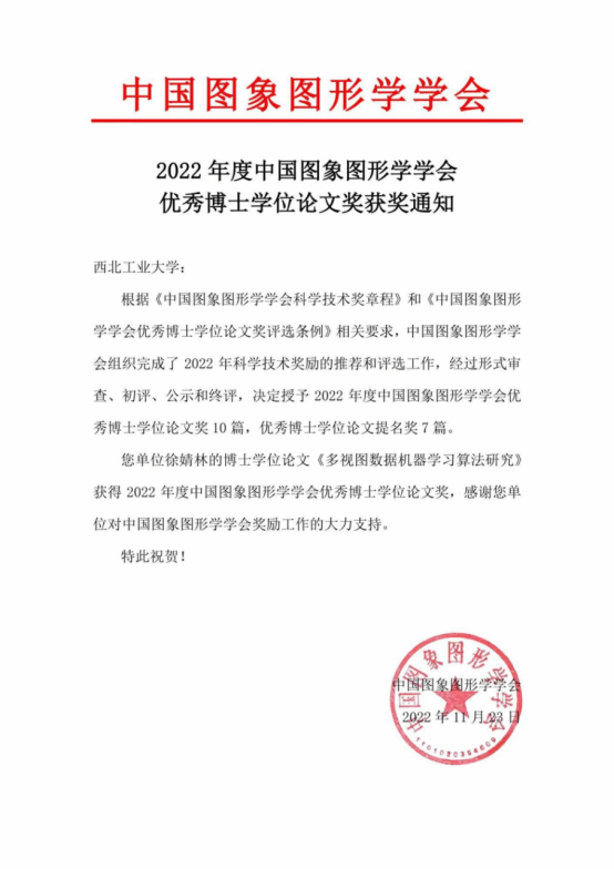 该奖项由中国图象图形学学会组织评选,根据《中国图象图形学学会科学技术奖章程》和《中国图象图形学学会优秀博士学位论文奖评选条例》相关要求,经过形式审查、初评、公示和终评,最终决定授予2022年度中国图象图形学学会优秀博士学位论文奖10篇,优秀博士学位论文提名奖7篇。